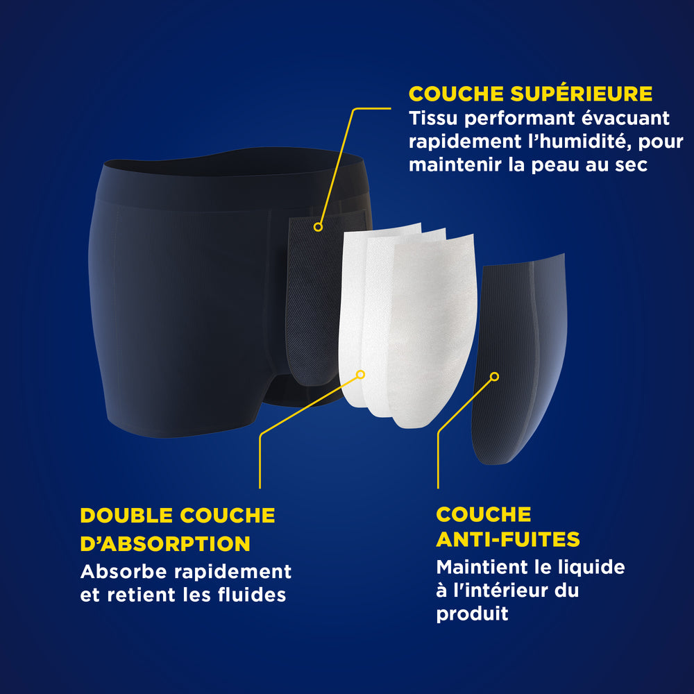 Nos boxers absorbants TENA sont fabriqués en coton biologique doux, pour plus de discrétion et de confort. Disponibles en 3 couleurs sobres et élégantes, ces sous-vêtements lavables sont dotés d'une ceinture élastique extensible anti-roulement. Ils ont l'aspect et le toucher d'un sous-vêtement classique. Vous ne remarquerez donc aucune différence, et personne d'autre non plus.